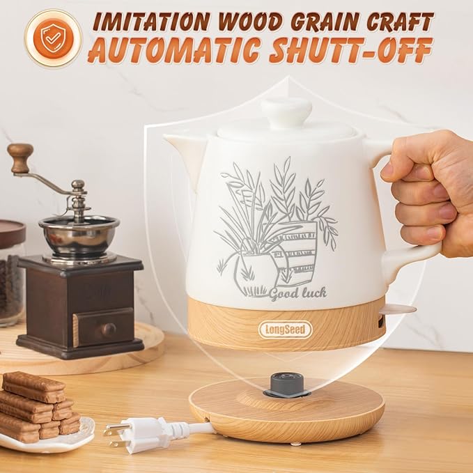 - Fast Boiling: 1000 watt Heating power,this ceramic electric kettle boils up to 1 liter (1 qt) of water faster than a microwave and safer than a stovetop pot. No need to wait for a long time, brew hot tea or coffee anytimeperfect for hectic mornings. Good kitchen assistant