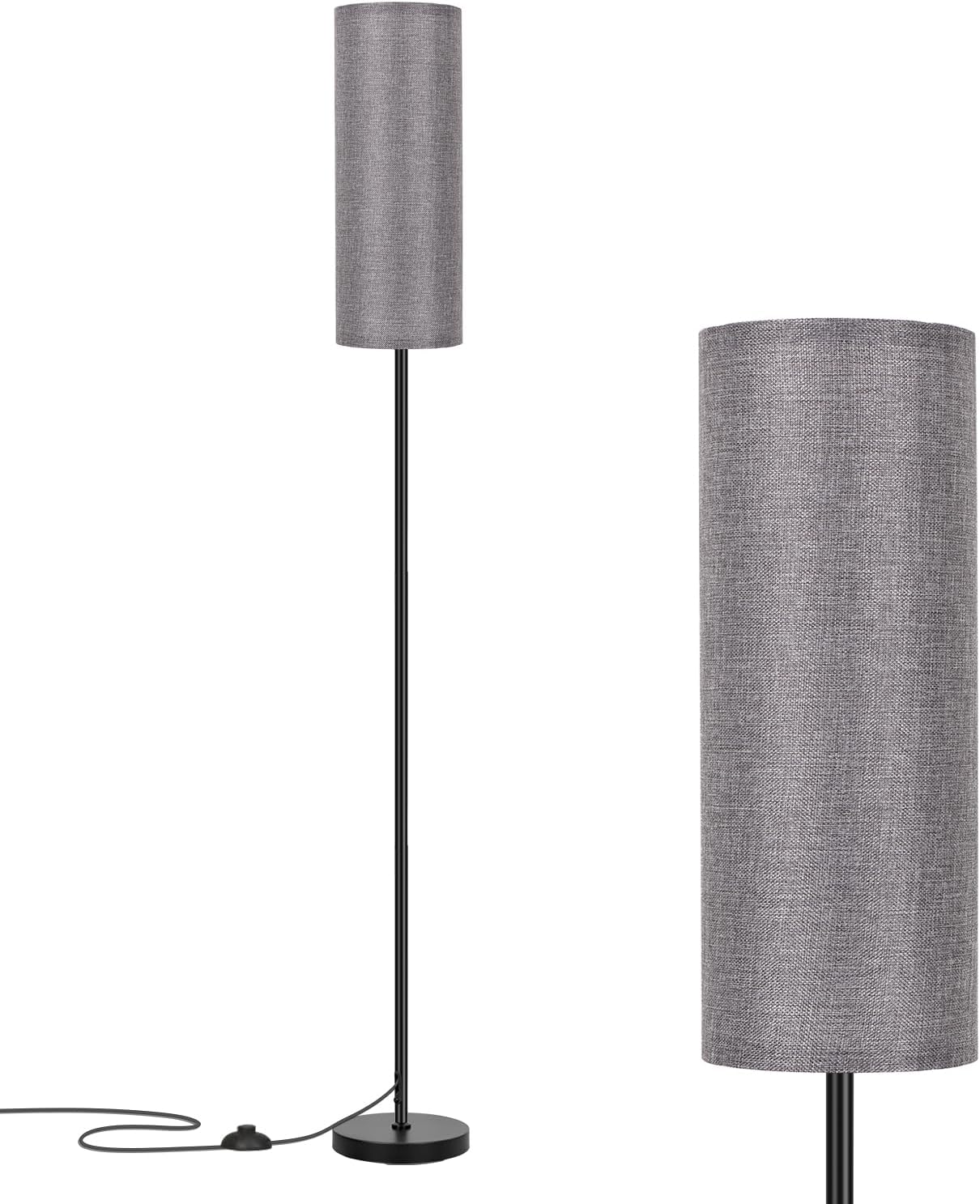 FRIDEKO HOME Floor Lamp with Grey Shade, Simple Design with Foot Pedal Switch, Small Tall Lamps for Living Room Bedroom Office, Corner Floor Stand Light with Black Pole Lamp (No Bulb/No Remote)