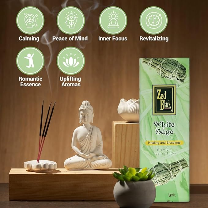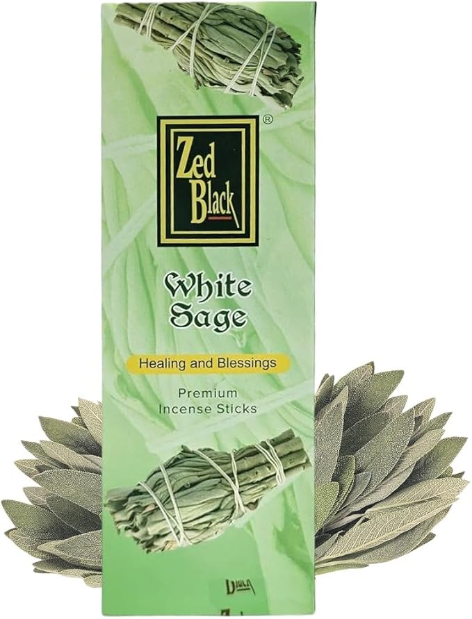 Zed Black White Sage Incense – 20 Sticks Hand Rolled Sticks | Premium Aromatherapy Incense for Relaxation, Stress Relief, Prayer & Spiritual Rituals.