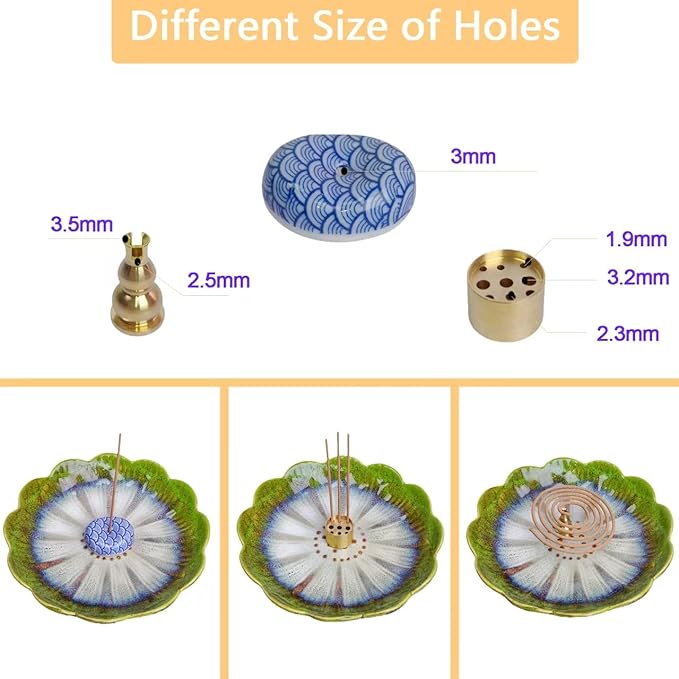 - Appropriate for All Sizes of Incense: The three incense stands are available in 2-4mm size, to meet a range of incense. It can ensures that the majority of incense sticks remain vertical and will not drop the incense ash on the table due to tilt