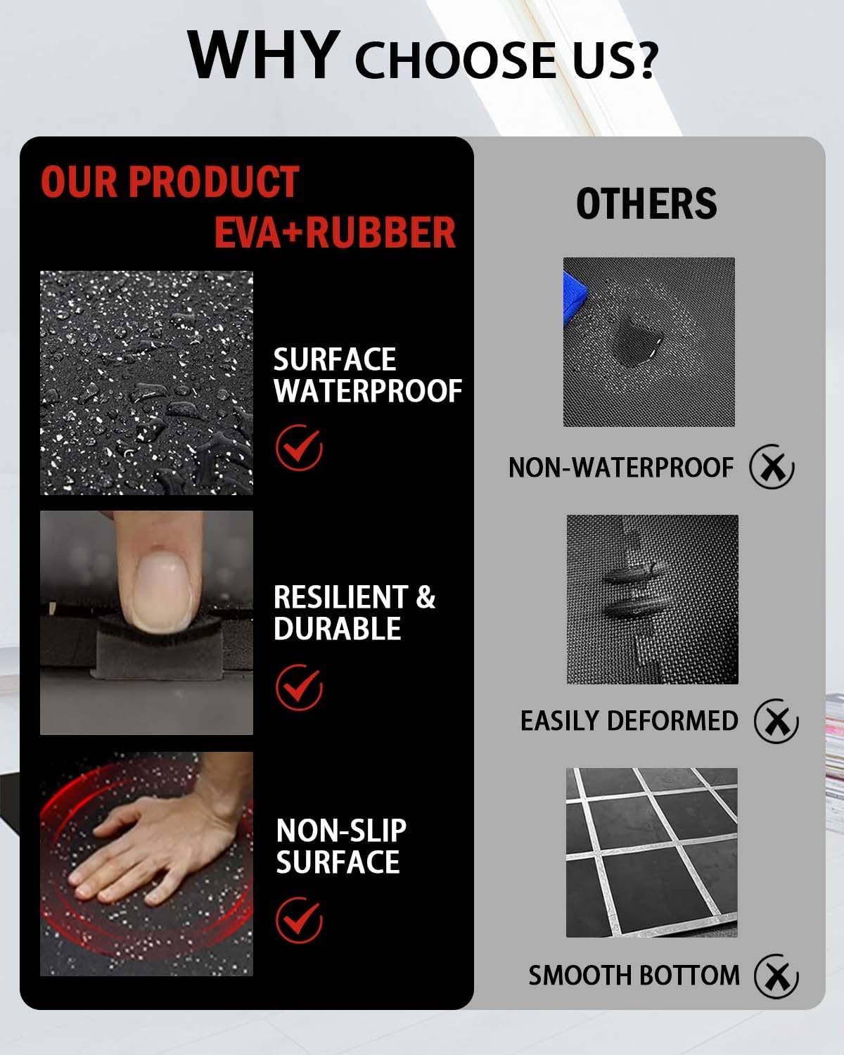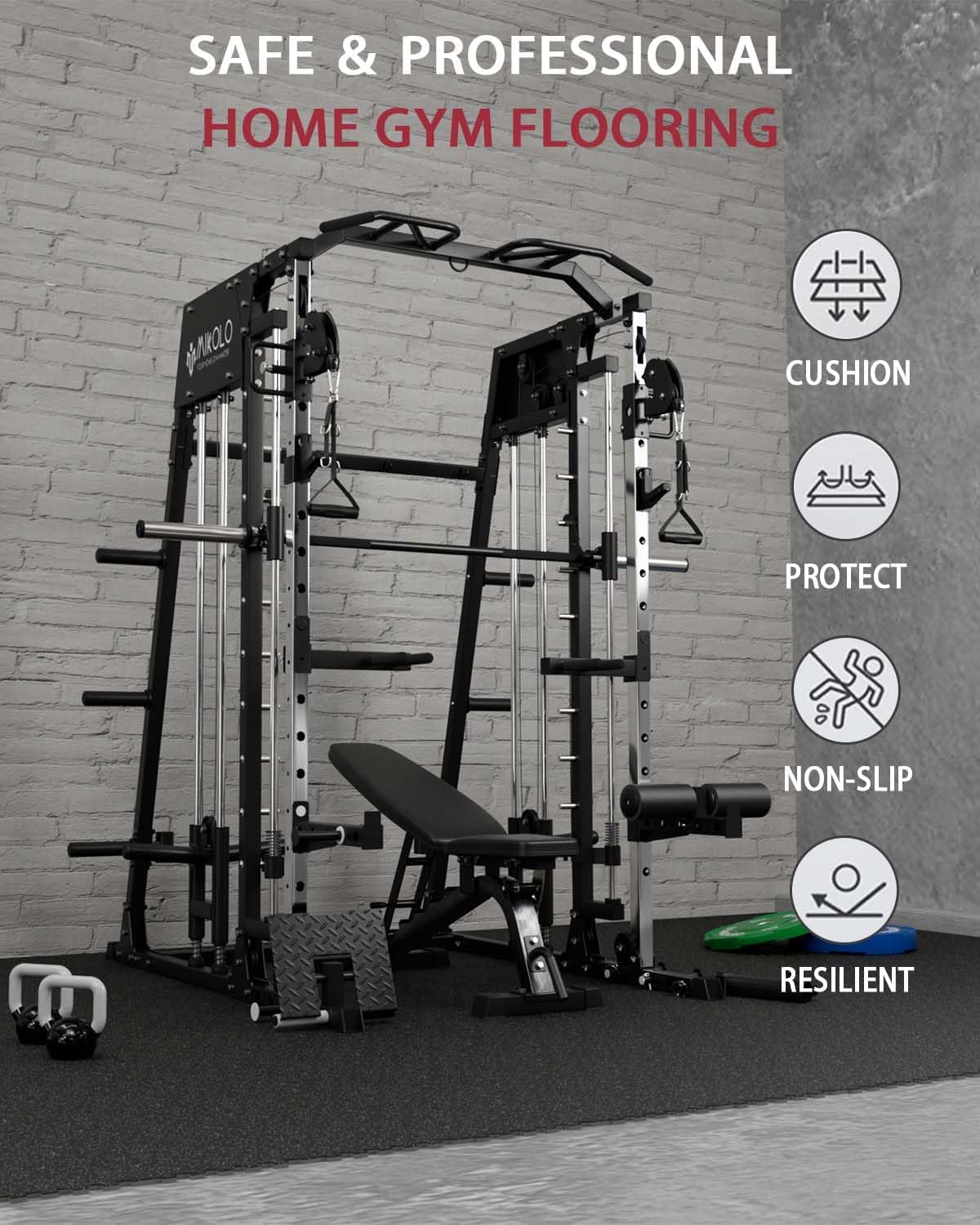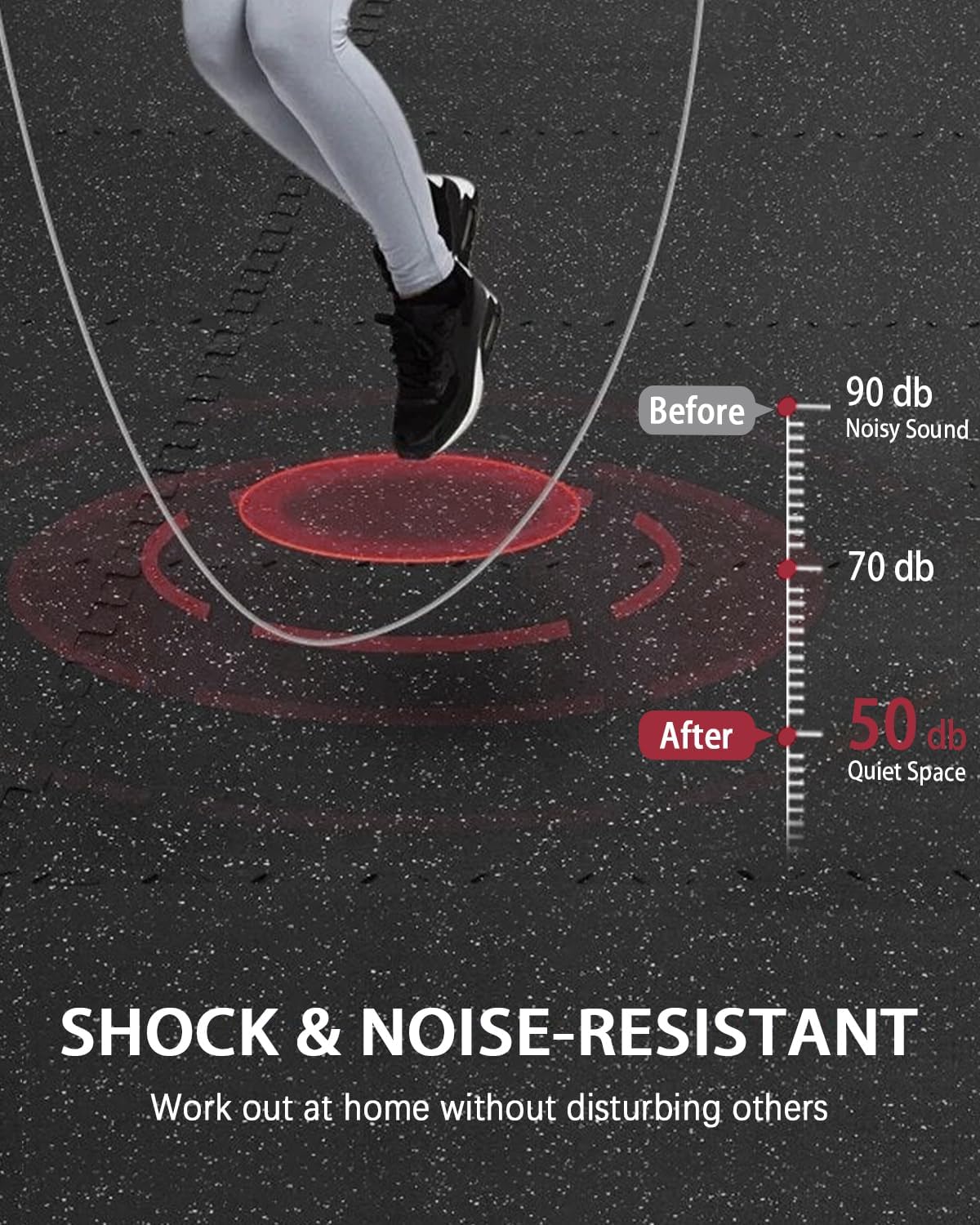 - ăTurn Your Home into a Damage-Free Gymă Stop worrying about scratched floors and noisy workouts. Our dual-layer mats act as a protective shield, combining a tough rubber top with a shock-absorbing EVA foam base. They preserve your floors from heavy weights and equipment while significantly reducing noise for a peaceful home environment