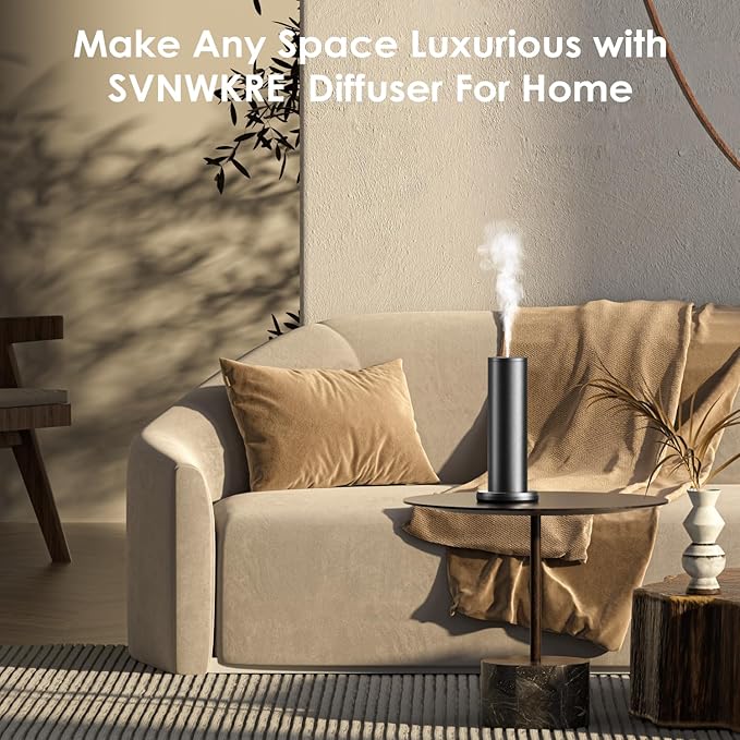 - Waterless Diffusion - Diffuse your essential oils with ease and elegance with the SVNWKRE home diffuser. Whisper-quiet yet powerful, this essential oil diffuser preserves the integrity of your essential oils and provides quality scent with style in your living room, bedroom or small office.