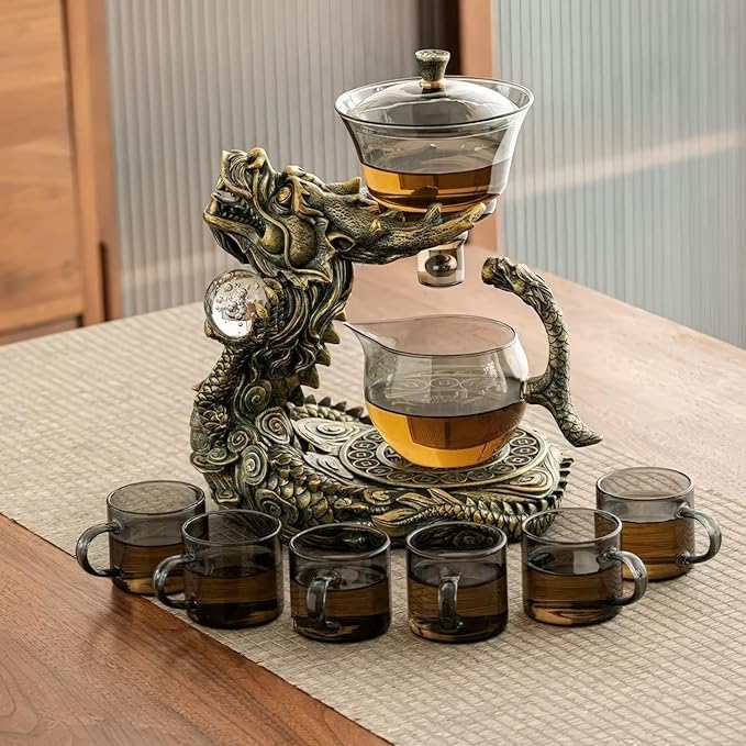 Dragon Lazy Tea Set, Semi Automatic Dragon Tea Set, Glass Magnetic Teapot Set with Infuser, Semi Automatic Tea Drip Pot Set for father's birthday, Christmas gift