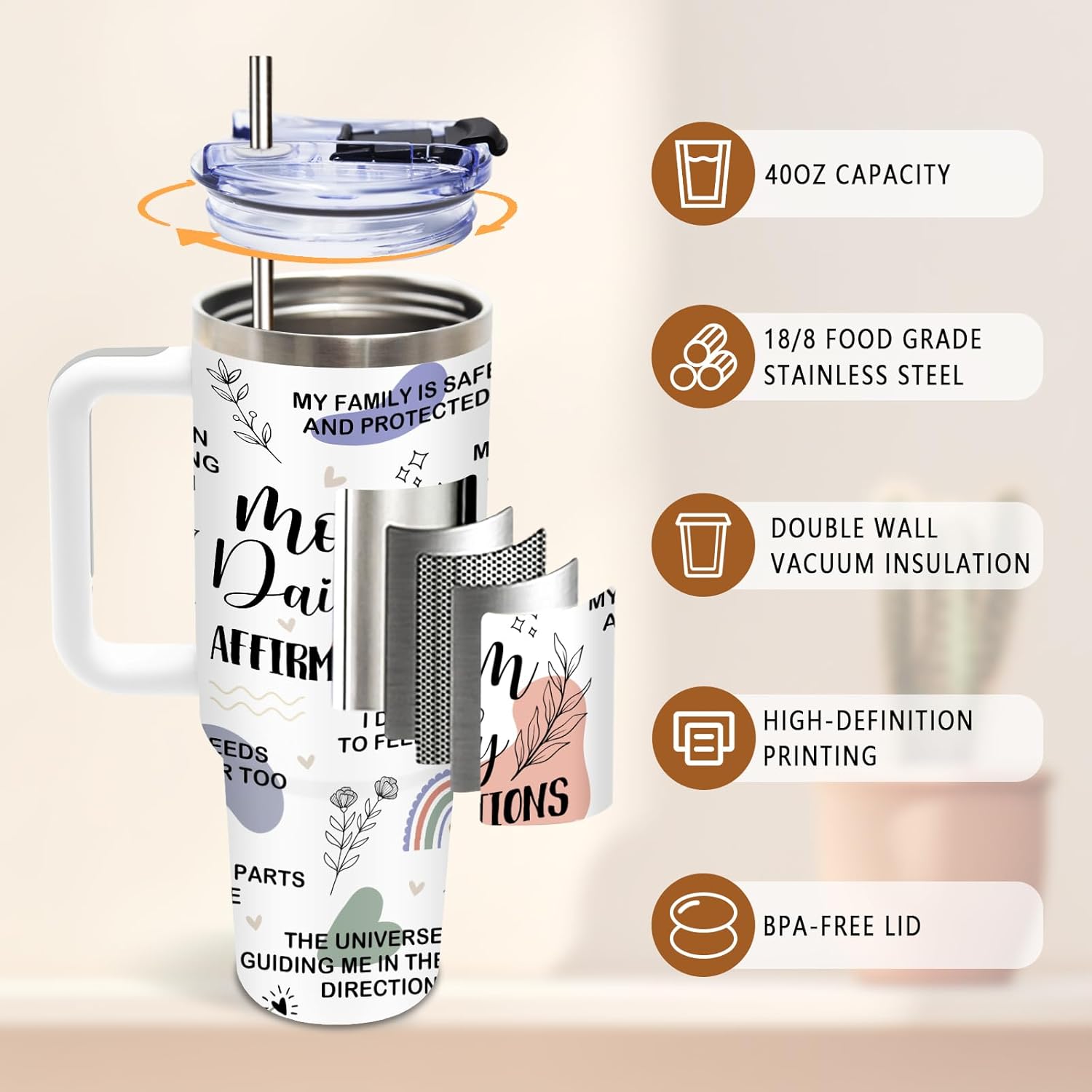 DUUV Mom Daily Affirmations Tumbler 40 Oz, Inspirational Gifts for Mom Wife from Son Daughter Husband, Expecting Moms Gifts for Mom's Birthday, Mommy Coffee Cup for Christmas Thanksgiving, 1PCS