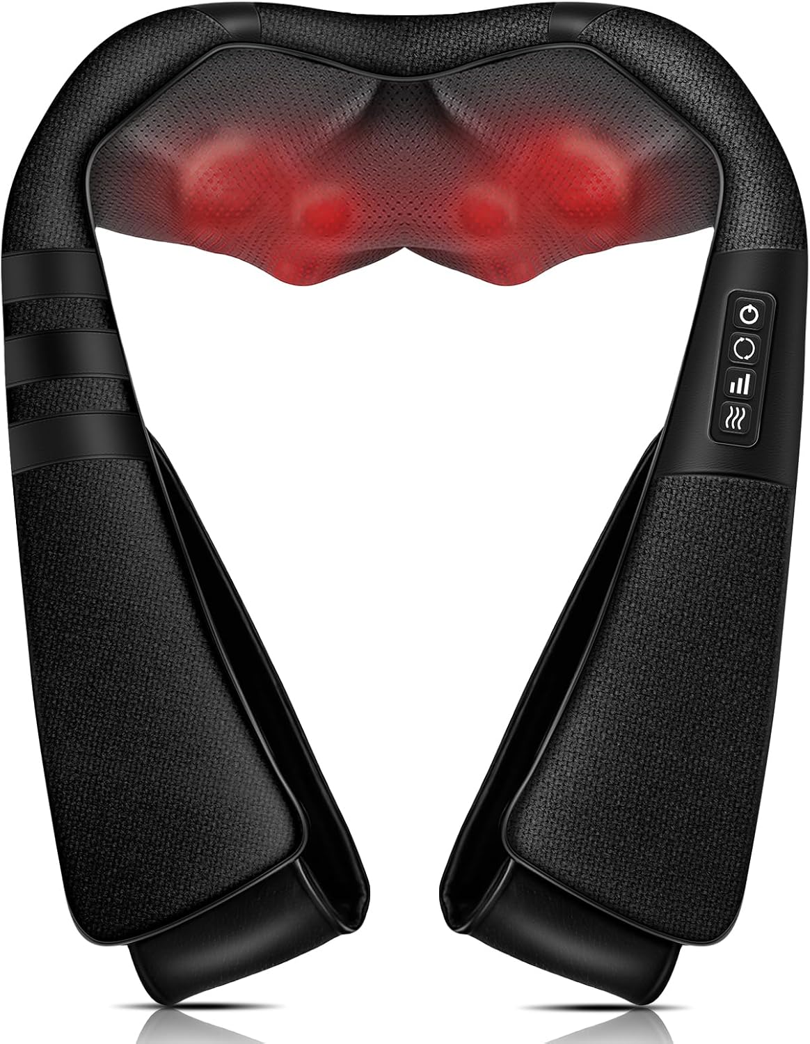 - Deep-Shiatsu Kneading Massage - The shiatsu neck and back massager features 16 bi-directional rotating massage nodes for therapeutic relief, it’s full-body versatility to target neck, back, shoulders, waist, legs and limbs. The massager for neck and shoulder pain can fully relieve the muscle pain and fatigue. The neck massager perfect for home, office, or travel, it would also be a wonderful choice for women,mother, father and friends