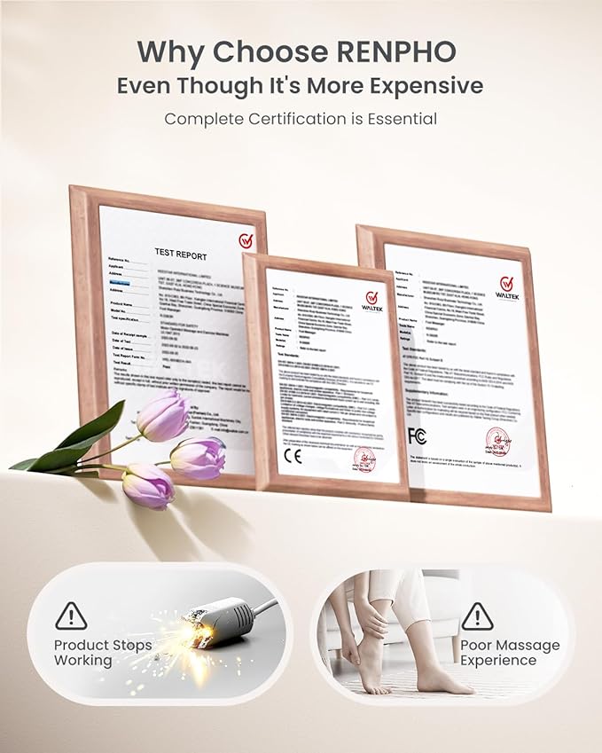 - Superior, Reliable Quality: RENPHO foot massager machine with heat has been tested and certified by a number of professional organizations. Our design team has solved the common failures of foot massager in the market, such as stopping after a period of use and abnormal foot massage function