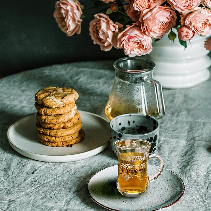 - 💠 Premium Quality Material: Crafted with high-quality glass, our Turkish Tea Glasses With Handle are built to last. Gold applique design on the surface, specifically for tea lovers, these cups provide a luxurious and elegant drinking experience. Note: The gold pattern on the surface is a decal process, so dishwasher safe is not recommended.