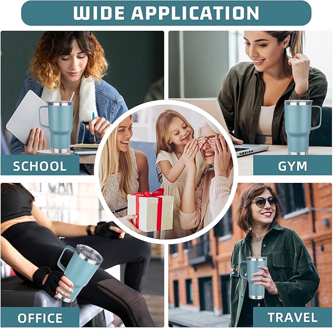 - EXCELLENT INSULATION PERFORMANCE: The coffee tumbler is designed with double-layer vacuum insulation, which can keep hot drinks warm for up to 8 hours, allowing you to enjoy warm coffee on cold mornings; while cold drinks can stay cold for up to 12 hours, allowing you to still savor icy juices on hot afternoons. Travel coffee mug insulation not only keeps drinks warm, but also prevents the outside of the cup from getting too hot or too cold, avoiding scalding or condensation.
