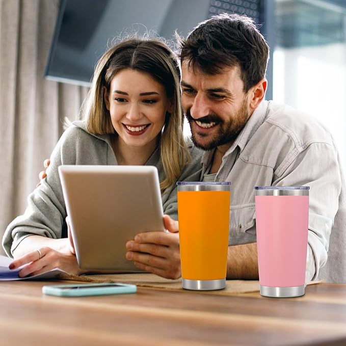 20 oz Tumbler with lid Double Wall Vacuum Insulated Tumblers Stainless Steel Coffee Mug Travel Coffee Tumbler Powder Coated Tumbler Cup Keep Hot&Cold - (Orange 12 Pack)