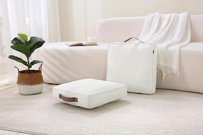 - Convenient and Portable :This sitting cushion is 18 x 18 inches and a height of 5 inches, cushy enough for both adults and kids. The pillows cover is removable and washable, offering convenience and durability. Additionally, the pillow seat features colorful handles, enhancing its versatility and portability, making it easy to carry and use both indoors and outdoors.