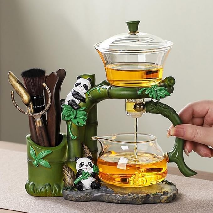 - High-Quality Materials:The Panda teapot stand and Loong handle are crafted from resin, ensuring a firm grip and ease of use. The glass cups are heat-resistant and visually appealing, adding to the overall elegance of the set.