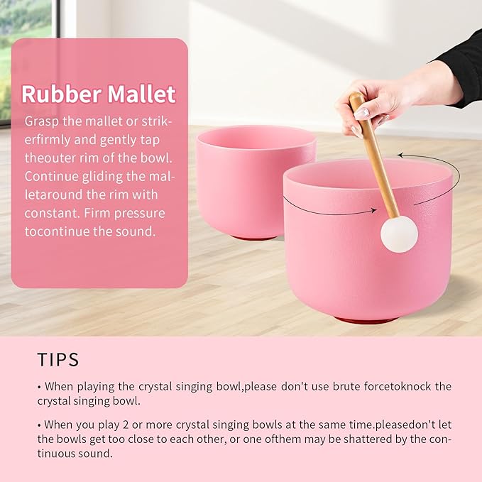 - 【Packaging and transportation】Crystal Singing Bowl set are carefully packaged in high-quality cartons and foam boxes to ensure safe transportation, protecting the bowls from damage. crystal singing bowls are high-quality fragile instruments