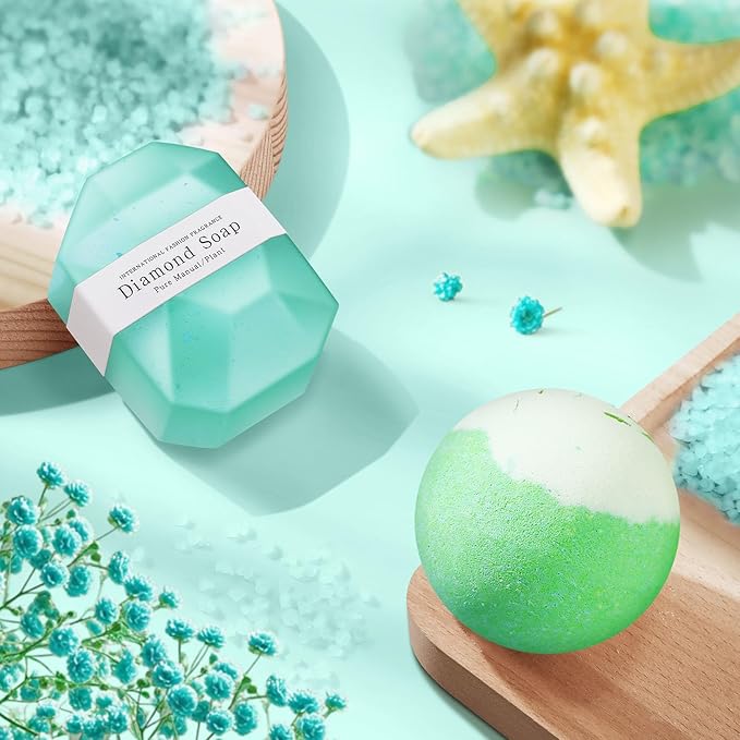 - SPA GIFTS FOR WOMEN: Crafted with natural wax and pure essential oils, this 4oz ocean candle burns clean for 30+ hours—no smoke, just pure relaxation. Paired with fizzy bath bombs and diamond handmade soap, this set fills her bath with calming ocean bliss. Perfect as friendship gifts for women, get well soon gifts, or just-because self care gifts to melt away stress and anxiety.