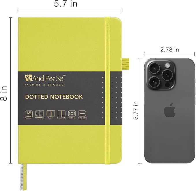 &And Per Se Dotted Journal Notebook, A5 Hardcover Leather Bullet Dotted Journal, 160 Pages 100 gsm Thick Paper, 3 Sheets of Stickers Included - 5.7'' x 8''(Lime Green)