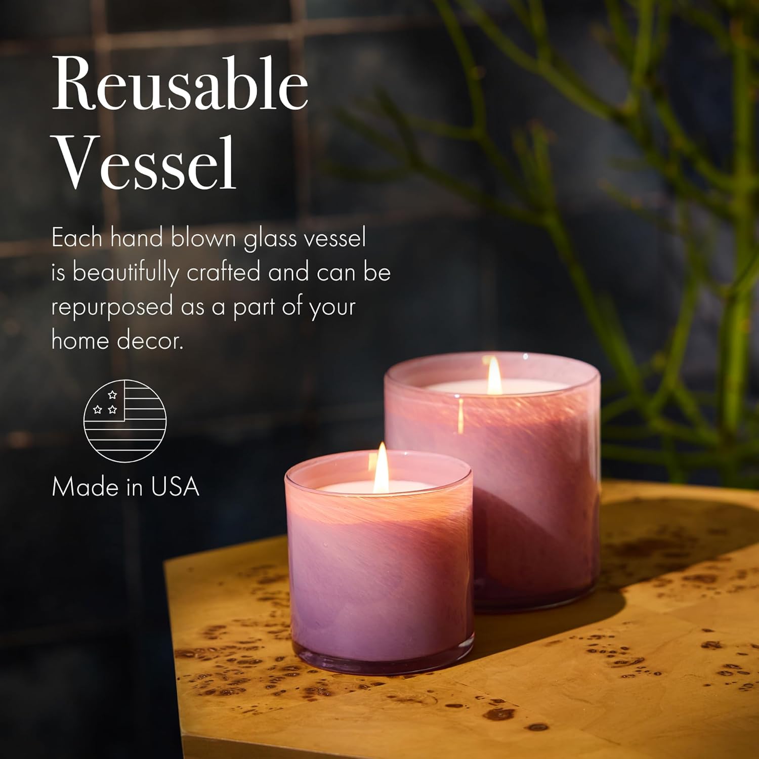 - REUSABLE VESSEL - Each hand blown glass vessel is beautifully crafted to enhance the burning experience. Even better, it can be repurposed as a part of your home decor.
