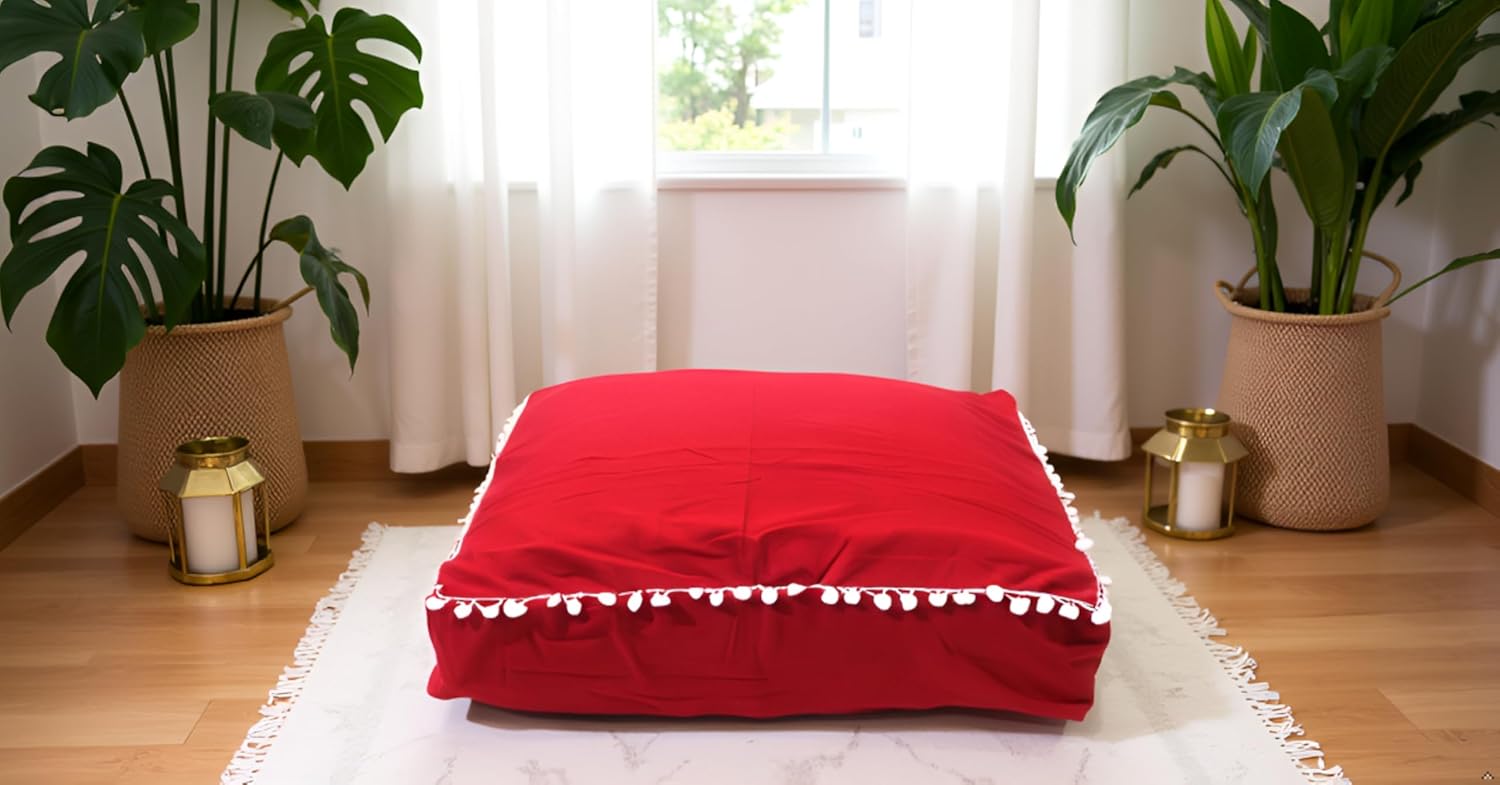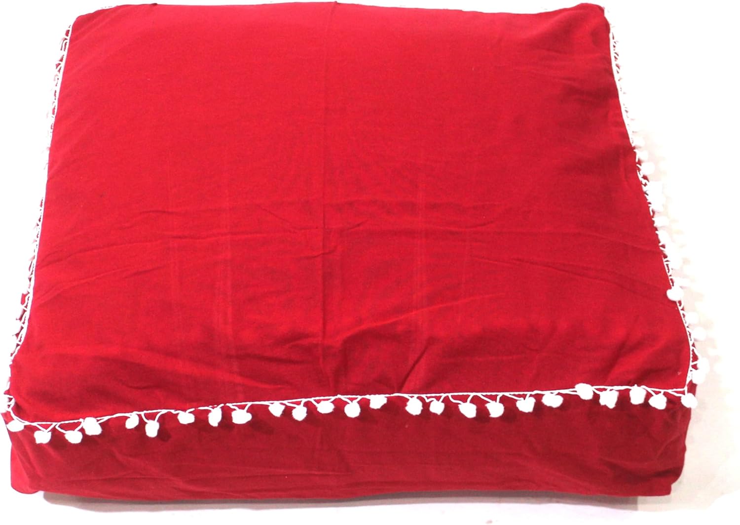 CRAFT KALA Meditation Floor Pillow Cover, Round Large Pillows Cover Seating for Adults, Bohemian Mandala Circle Cushions Cover for Outdoor Fireplace Yoga Living Room (Red, 24" Square)