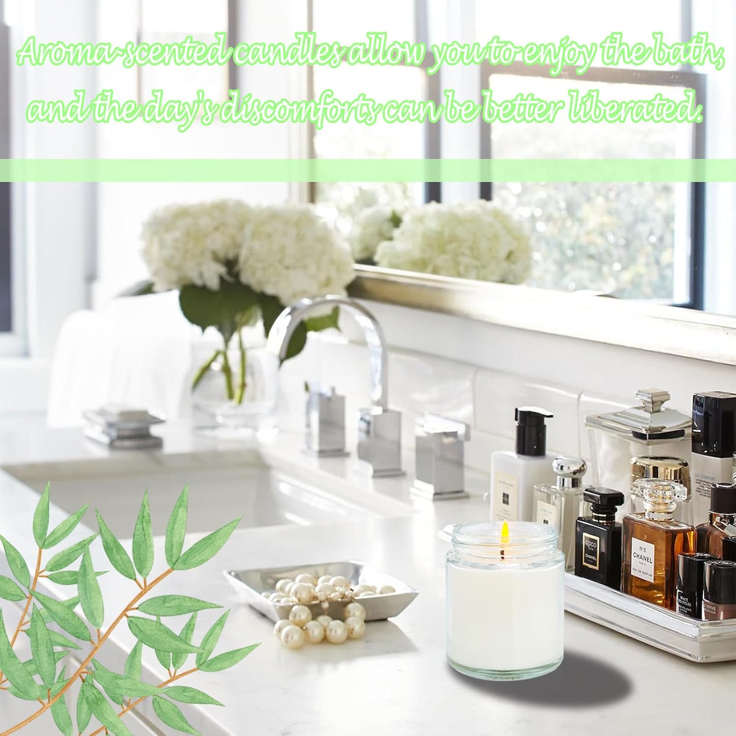 - 🪔🪔SAFE DESIGN: Our aromatherapy candles are made of soy and eucalyptus, the bottle is designed by Mason jar shape and white color, the soy candles are smoke-free and harmless and safer, along with the light eucalyptus fragrance has a relaxing and soothing effect, which is good for relieving your stress and relaxing your spirit when you are fatigued.
