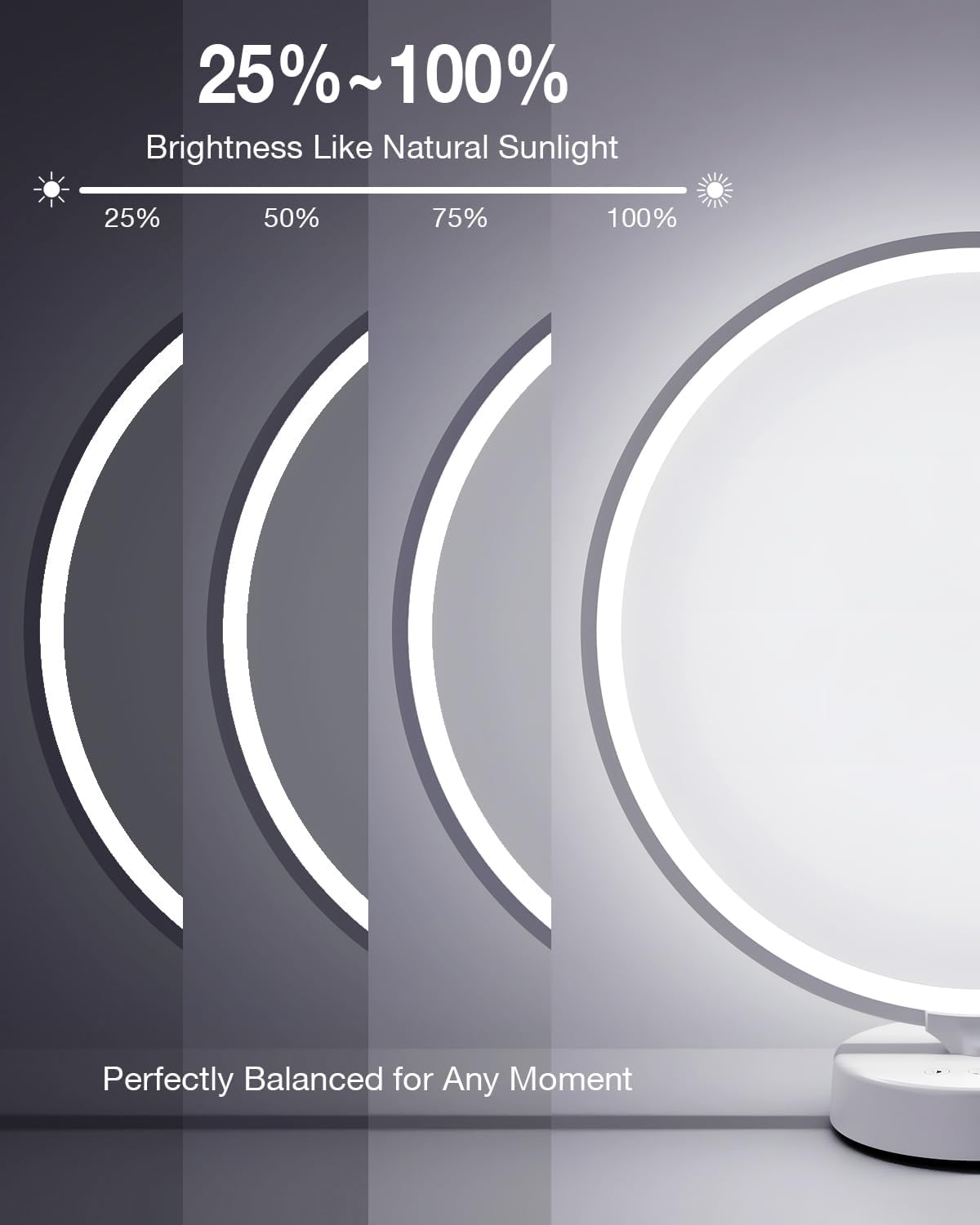- 10000 LUX & NEW UPGRADED: Upgraded sun lamp has added lamp beads for greater brightness and uniformity. 10000 lux full-spectrum light (CRI Ra98, UV-free) without flicker or glare, restoring daylight, effectively regulates sleep. With upgraded USB-C port, enjoy the light while effortlessly charging your phone