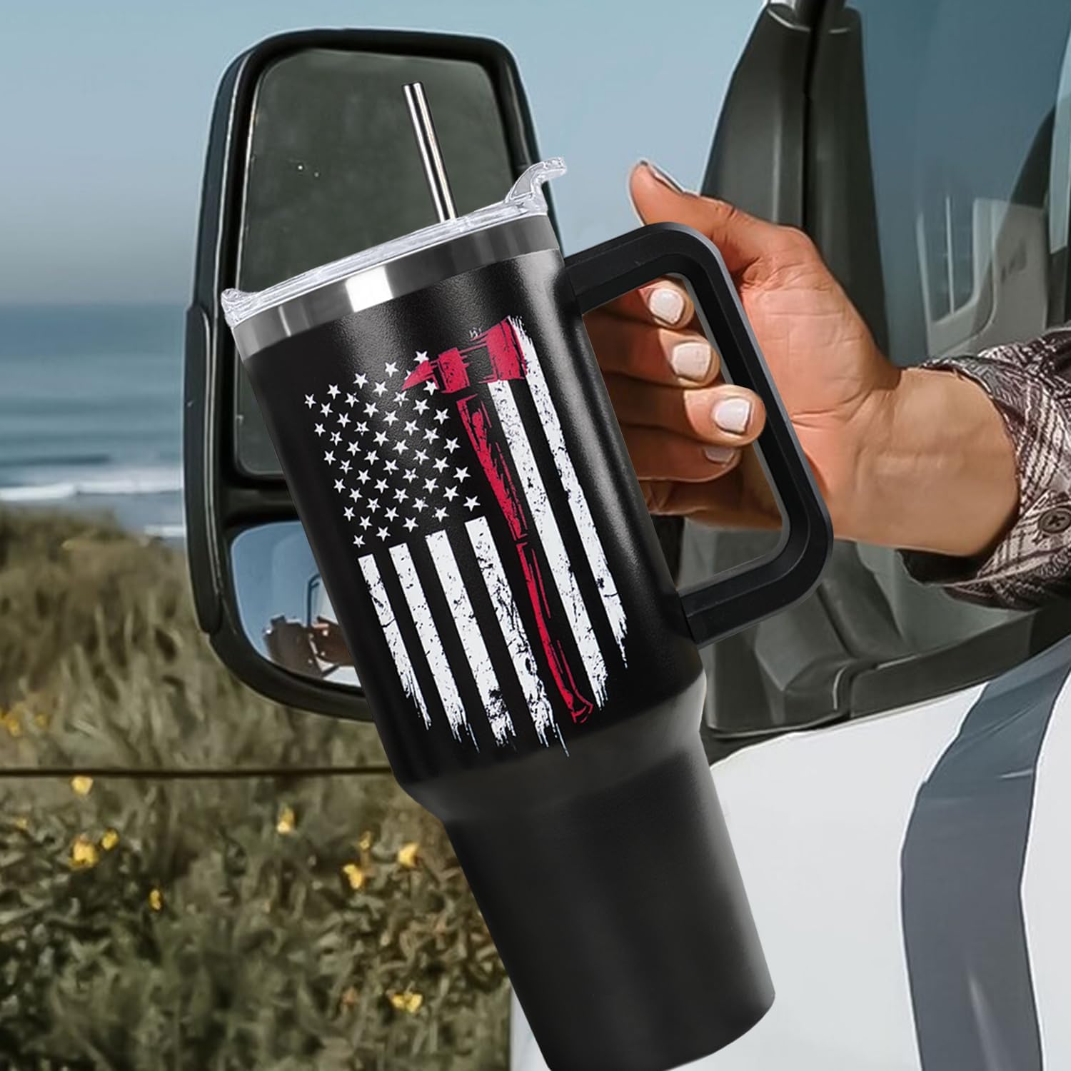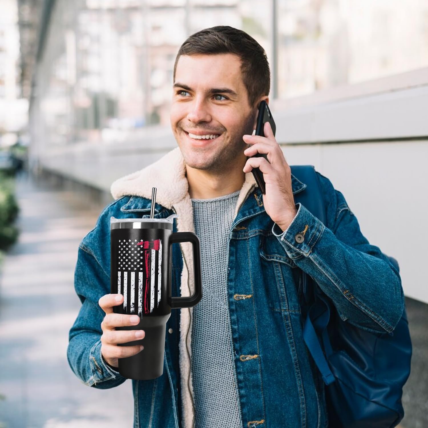 Ceovfoi Firefighter Gifts for Men,40 oz American Flag Tumbler with Handle Lid and Straw Stainless Steel Cups Mug, Firefighter Stuff Supplies Accessories
