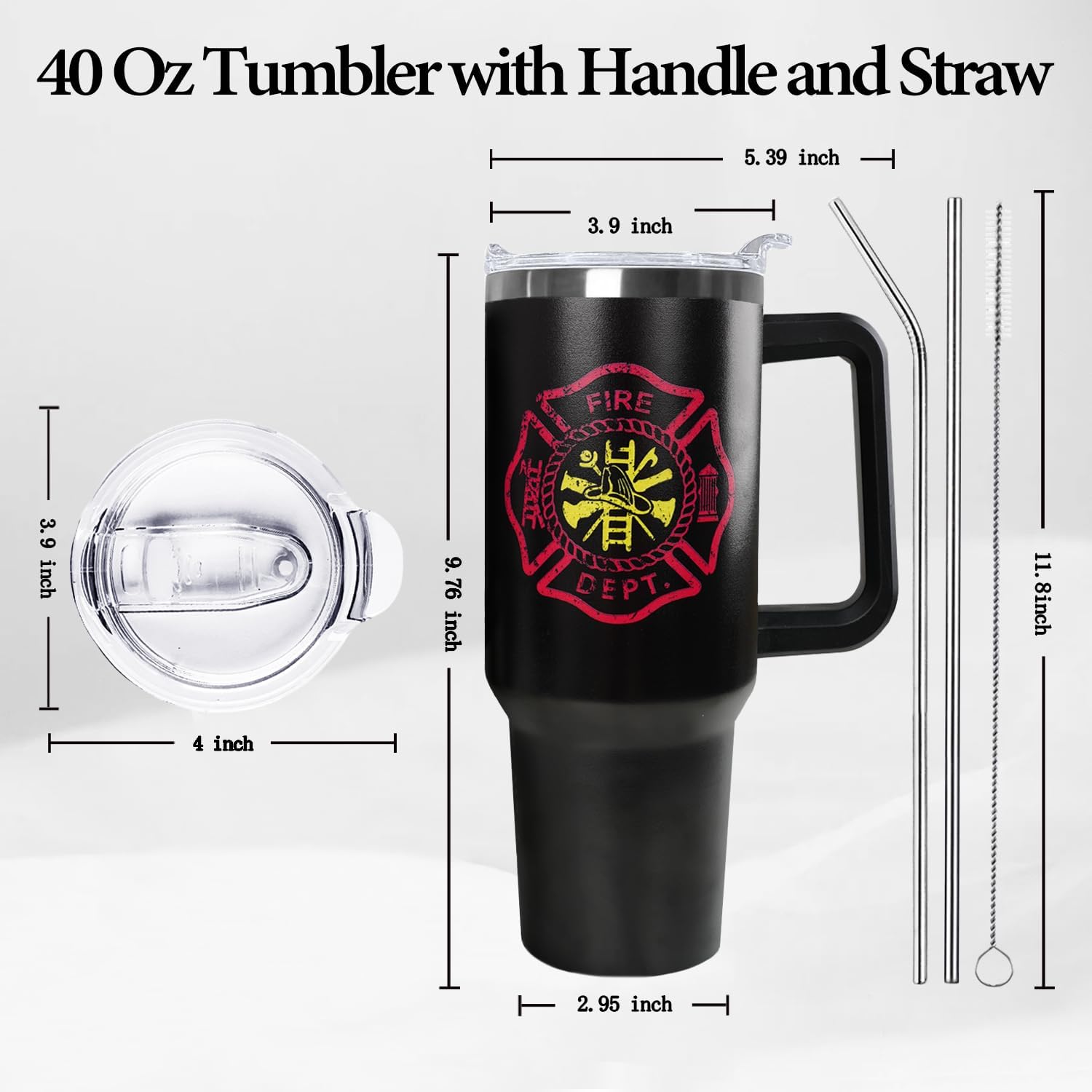 - Dad Gifts Set: 1 Packs 40 oz black dad mug cup travel tumbler water botter ,2 PCS stainless steel straws and 1 brush for straw cleaning.Remind your belove people just how much they're loved every time they sip from this firefighter tumbler