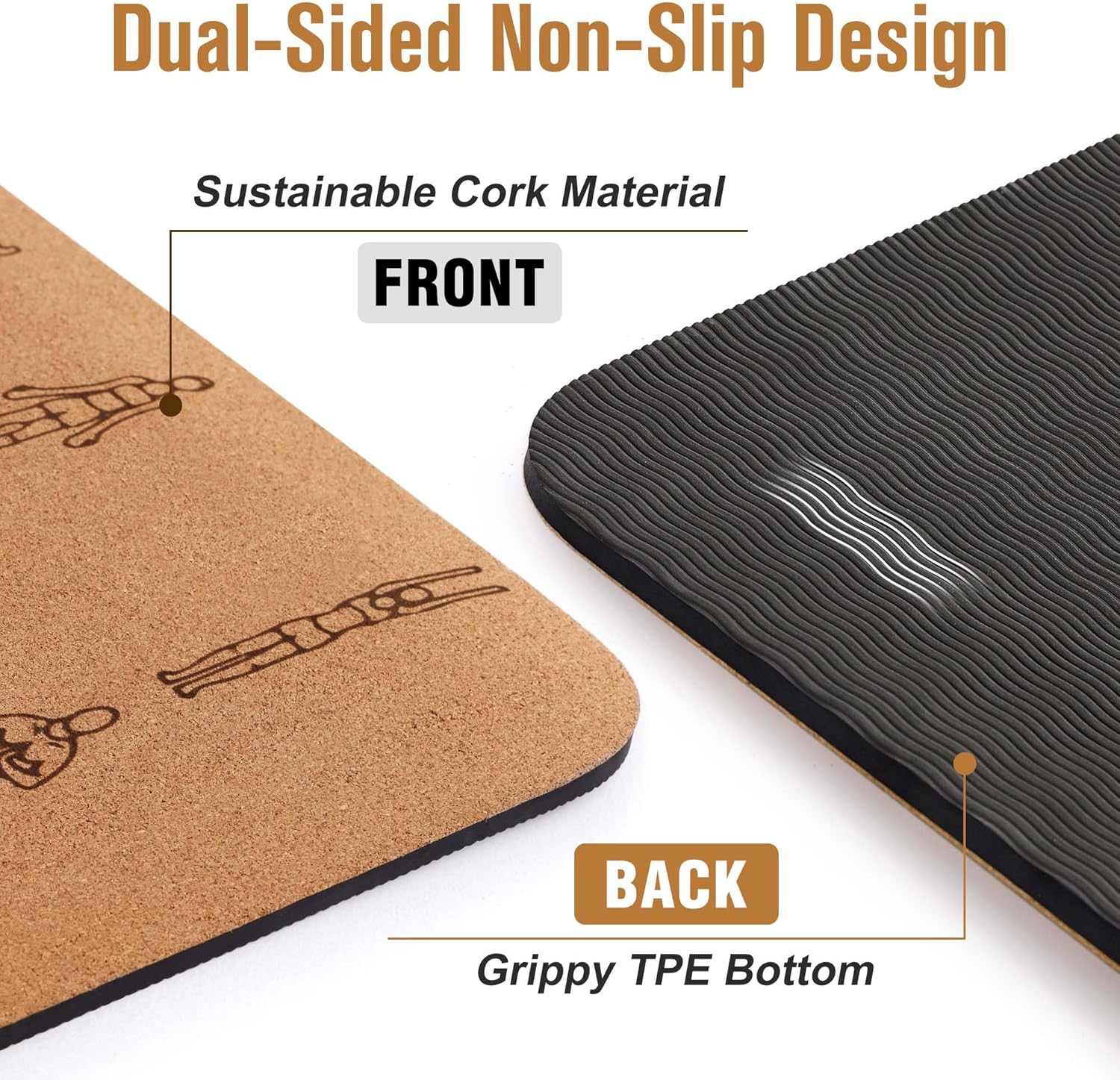 - Perfect Cushioning: 6mm cork yoga mat offers optimal cushioning for muscles and joints during exercise, providing enhanced comfort and relieving knee pain for users of all genders. The natural cork surface ensures superior traction and grip, effectively preventing slips and enhancing stability during practice.