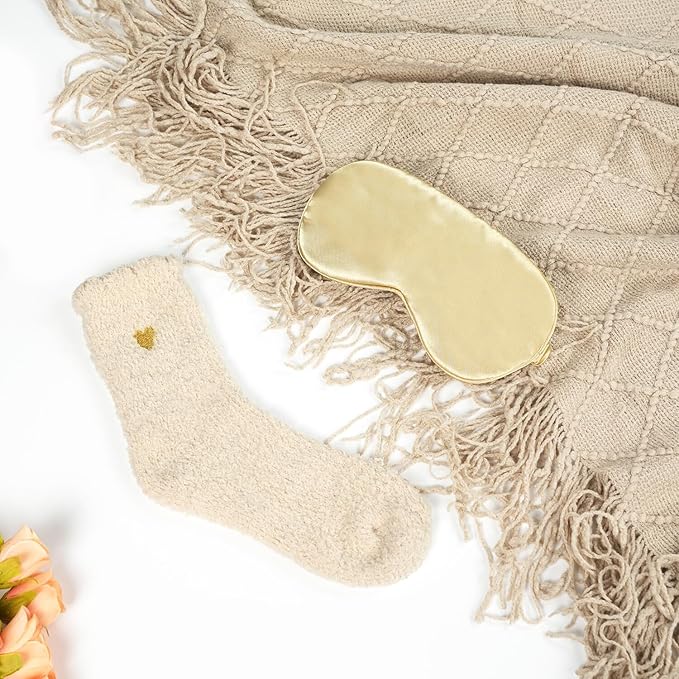 - A Cozy Embrace for Her Soul – The Ultimate Self-Care Sanctuary: This thinking of you gift for women wraps her in comfort, like a gentle hug after a long day. The plush checkered blanket nestles around her shoulders, the "Just Hug" scented candle fills the room with calming vanilla, and the silky eye mask shields her from the world. Perfect for when she needs to pause, breathe, and remember she’s cherished