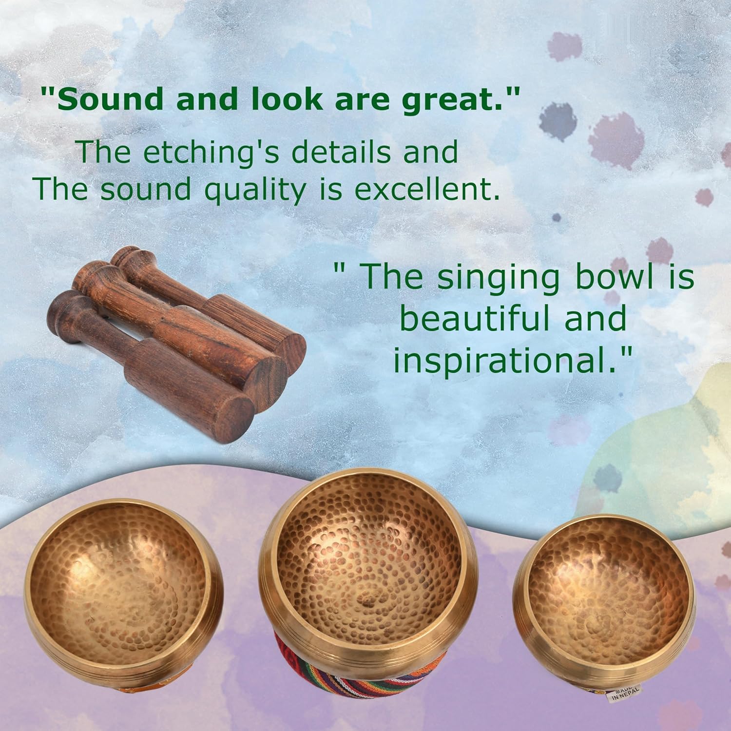 Tibetan Singing Bowl Set - Authentic Cuencos Tibetanos for Sound Healing, Meditation & Chakra Balancing - Includes Cushion, Mallet-Unique Spiritual Gifts for Women and Men (3 Chakra Set)