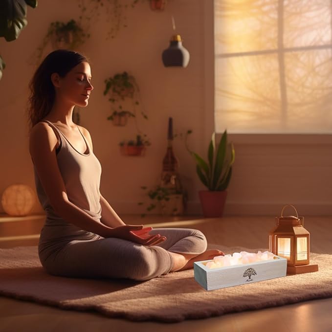 - Cozy Ambient Glow: The rustic wooden base features a built-in warm light that highlights the salt's natural texture, creating a zen atmosphere ideal for chilling out, yoga sessions, or creating that perfect Instagram-worthy relaxation vibe.