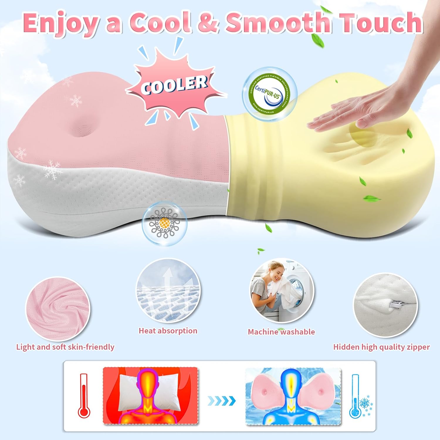 - đăBreathable & Cool Skin-friendly PillowcaseăDon't let stuffy pillows ruin your sleep. Mixiniso side sleeping pillow has a double-layer skin-friendly ice silk pillowcase, which is soft and fits well with the pillow core. The cooling pillow cases are made of breathable fiber fabric that fits perfectly with our skin, allowing you to fall asleep faster and deeper the whole night.It is removable, has a zipper and is machine washable.