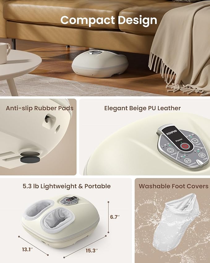 - Genuine Professional Foot Massage: RENPHO Foot Massager Machine is meticulously crafted with insights from 300+ massage therapists. Exclusive Pressure Monitoring Technology enhances the comfort of foot massage by 30%, with 360-degree wraps to thoroughly relax your feet