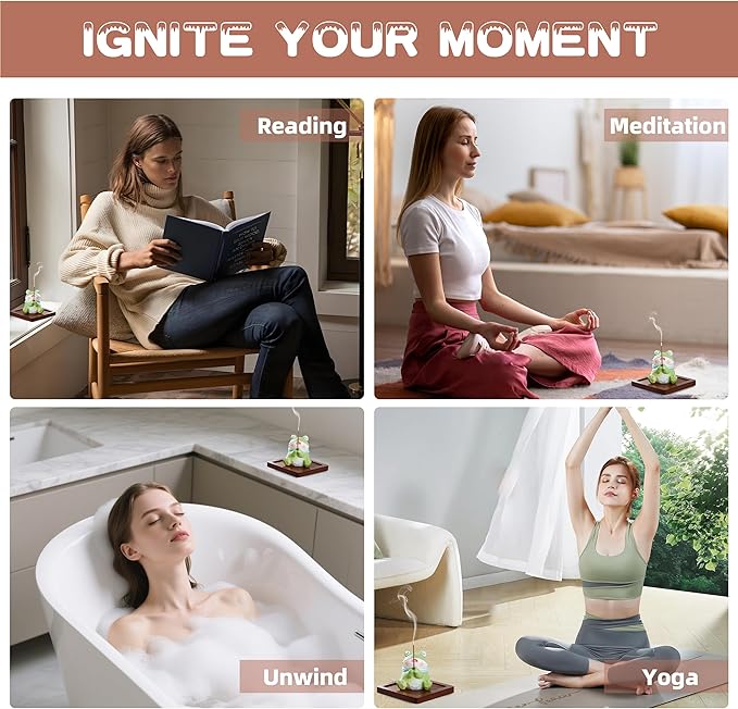 - CUTE FROG INCENSE HOLDER: Adorable resin frog (3.39in × 3.39in wooden tray) holds 3 mm thin incense sticks between uplifted hands; Ideal for creating calming atmospheres during yoga sessions, reading breaks, or evening tea ceremonies