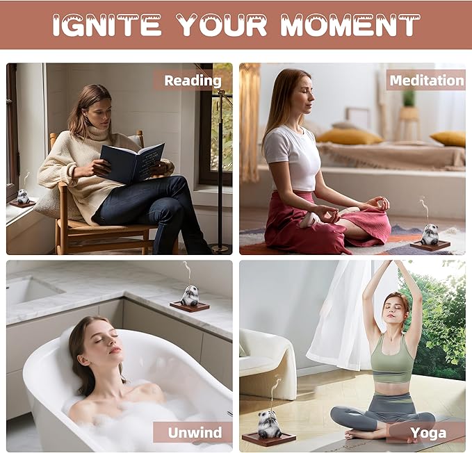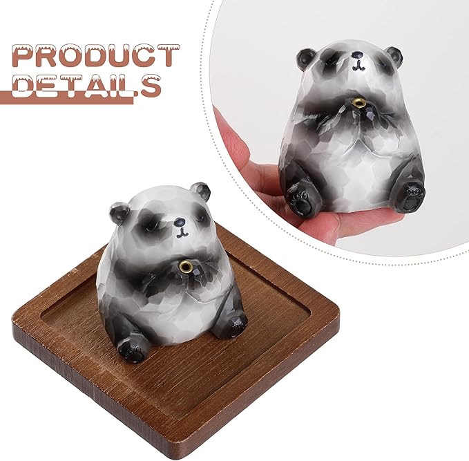 - CUTE PANDA INCENSE HOLDER: Adorable resin panda (3.39in × 3.39in wooden tray) holds 3 mm thin incense sticks between uplifted hands; Ideal for creating calming atmospheres during yoga sessions, reading breaks, or evening tea ceremonies
