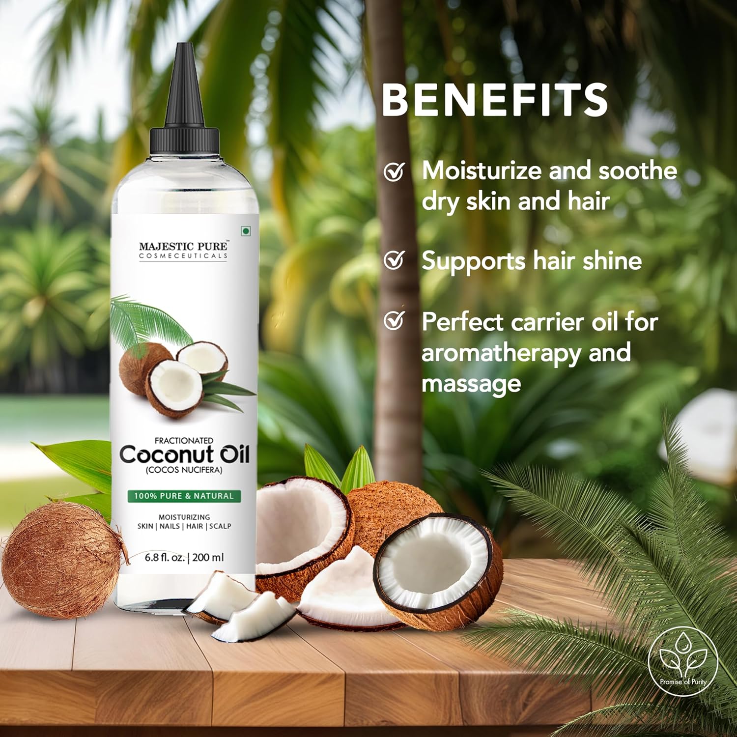 Majestic Pure Fractionated Coconut Oil - Relaxing Massage Oil, Liquid Carrier Oil for Diluting Essential Oils - Skin, Lip, Body & Hair Oil Moisturizer & Softener - 6.8 fl oz