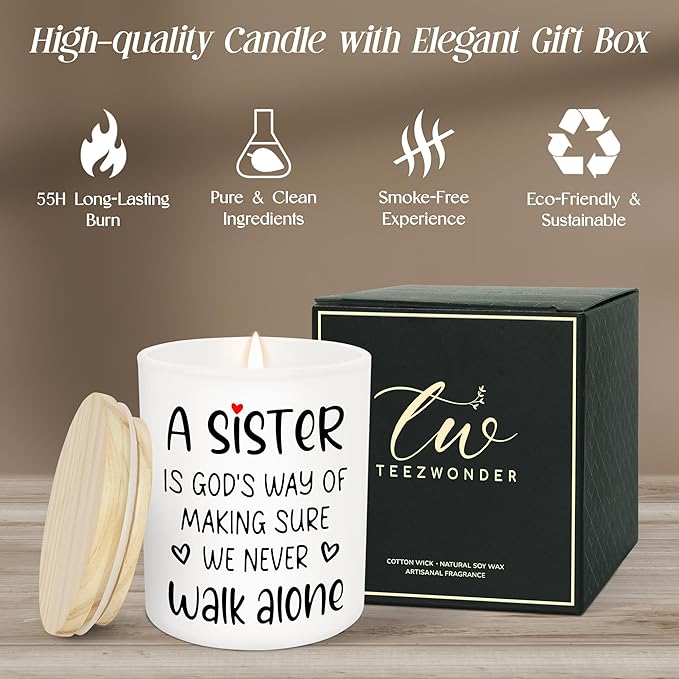 - GIFTS FOR SISTER – Celebrate the bond only sisters share with these sister gifts for women. A gentle reminder that "we never walk alone," this sister candle makes heartfelt gifts for her, sister birthday gifts from sister, or big sister gifts for girls to honor love, faith, and connection. Ideal for home decor and meaningful surprises.
