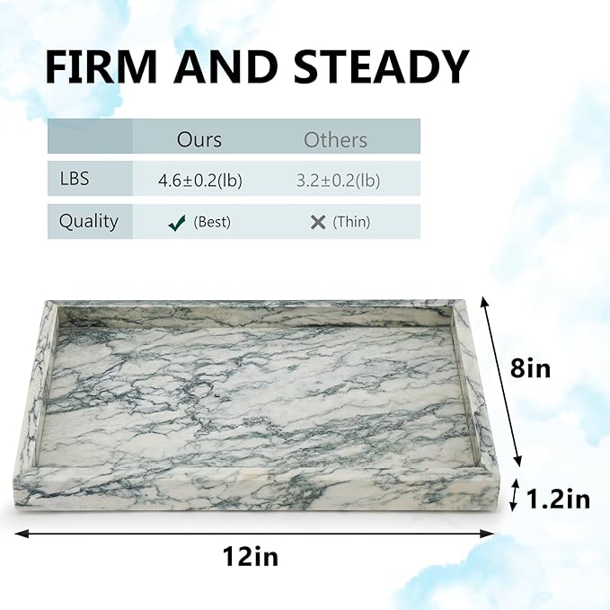 - Safe and Practical Design: The bathroom marble tray is fitted with anti-skid pads on the bottom, preventing slips and protecting your countertops from scratches. Our storage tray is durable, with a smooth and sturdy surface that's easy to clean. Simply wipe it clean with a dry cloth to maintain its natural shine.