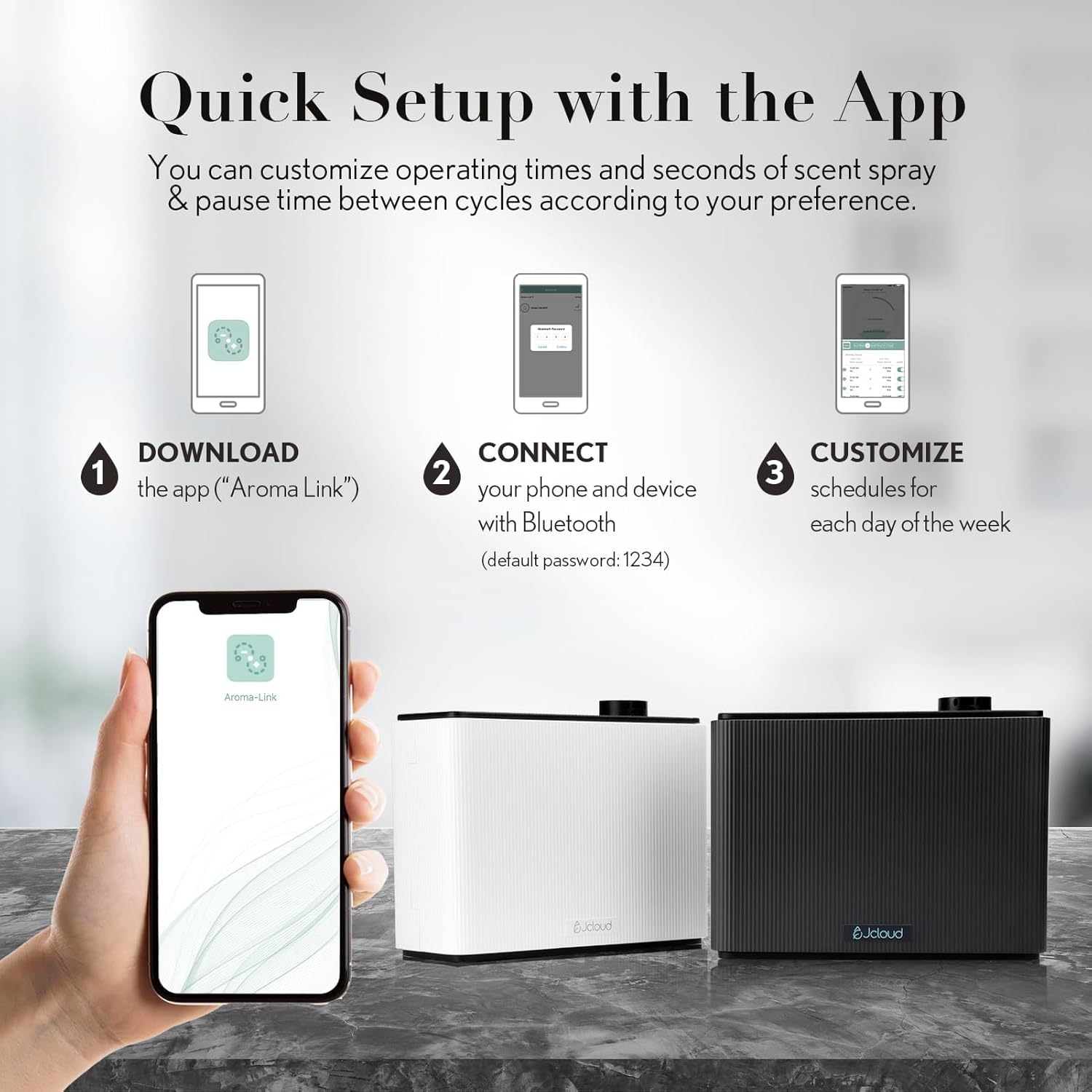 - QUICK SETUP WITH THE APP – Indulge in the power of aroma at your fingertips. Set your desired run time and multiple advanced schedules easily via Bluetooth through the app. Let the smart scent air machine brings the scent to your life at the right time.