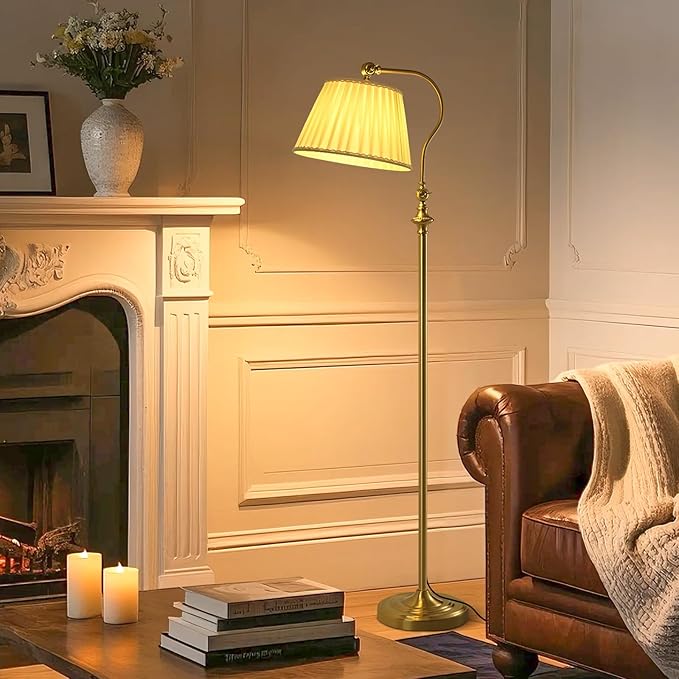 - Luxury Electroplated Gold Finish. Fingerprint-resistant coating maintains mirror-like shine for years.The gold brushed floor lamp is the same color as brass. It is very high-end. It is very suitable for living room, bedroom room decoration or study sofa reading lamp.