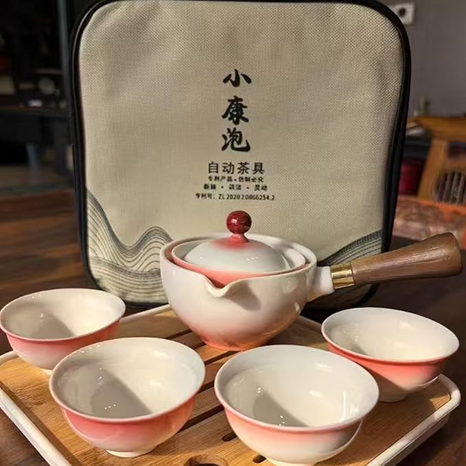 Ceramic Portable Travel Tea Set, Chinese Kungfu Tea Set with 360 Rotation Teapot and Infuser, 4 Tea Cups, Tea Tray And Travel Bag (Gradient Red)