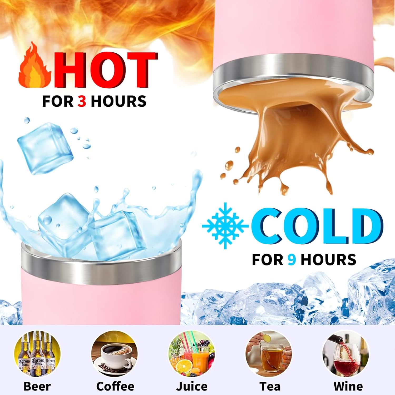 - 【20 OZ TUMBLER & Insulated Tumbler】 Keep beverages hot/cold for 10+ hours with our 20 oz stainless steel tumbler. The double-walled vacuum insulation ensures optimal temperature retention, perfect for outdoor adventures or daily hydration. Lab-tested to withstand drops and extreme temperatures. Enjoy every sip, anytime, anywhere!