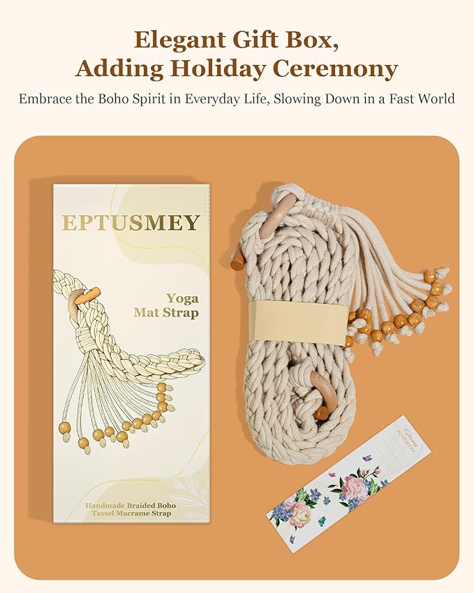 - 【THE PERFECT GIFT CHOICE】Eptusmey’s bohemian yoga mat strap arrives in an elegant hand-painted gift box, making it a thoughtful present for yoga teachers, students, friends, girlfriends, wives, and anyone who loves boho-chic style or handcrafted accessories. Perfect for everyday use and special occasions alike—family gathering, wedding, Mother’s Day, anniversary, birthday, or Christmas, and more.
