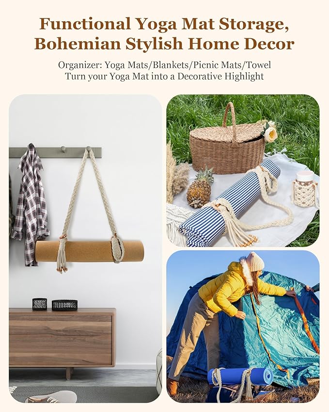 - 【MULTIFUNCTIONAL UTILITY YOGA STRAP】More than just a yoga mat holder, this versatile strap adapts to a variety of everyday needs. Use it as a stretching aid, to secure exercise equipment like foam rollers or resistance bands, organize travel gear, or even as a makeshift handle for blankets, towels, or picnic mats. Its adaptability makes it a practical accessory for yoga sessions, workouts, travel, or daily organization.
