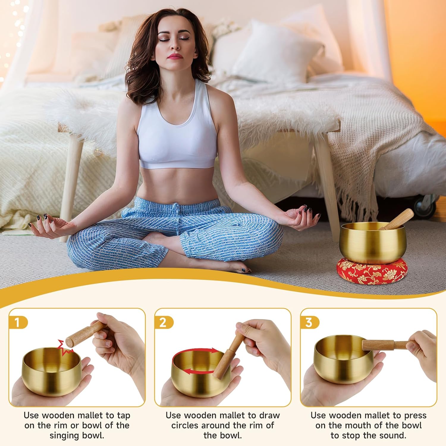 - ELIMINATES STRESS & ANXIETY: Our mini meditation sound bowl can be used not only for sound healing, but also for purifying your home's magnetic field. It produces soothing tones that correspond to the body's natural rhythms, altering the body's physiological parameters, such as brainwaves, blood pressure, heart rate, and more. It puts your mind, body and spirit into an unprecedented state of relaxation, helping you to adjust, purify and stimulate your body's energy flow, deeply healing and nourishing your body and mind.