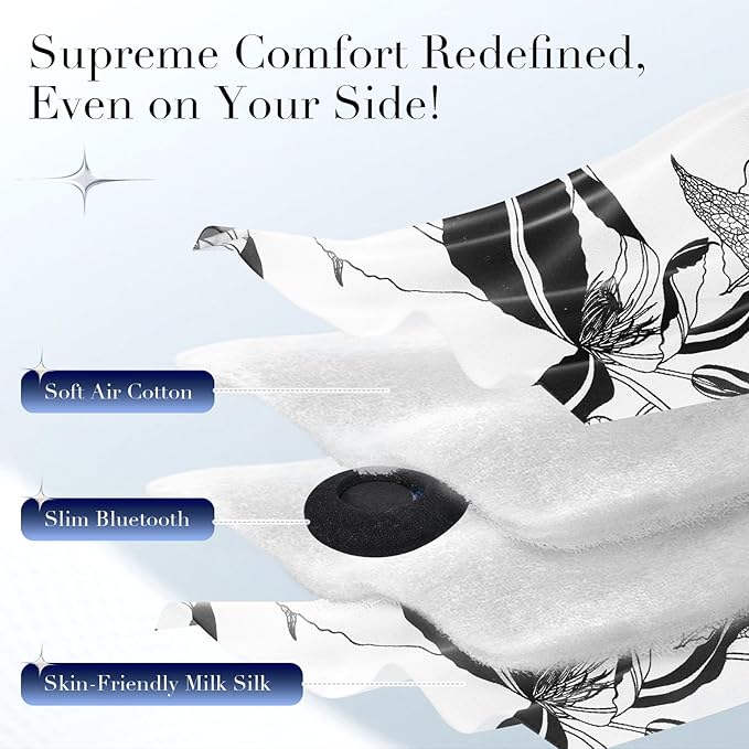 - Cloud-Like Comfort: LC-dolida silk sleep mask offers luxurious comfort with a cool, silky touch for your hair, skin, and eyes. The interior is filled with ultra-soft, cloud-like air cotton, and the exterior features silky milk silk, providing a refreshing, ice-cream-like cooling sensation. Upgraded thin Bluetooth speakers enhance comfort, making the LC-dolida silk eye mask ideal for any sleeping position, especially for side sleepers, as the speakers won't press on your ears