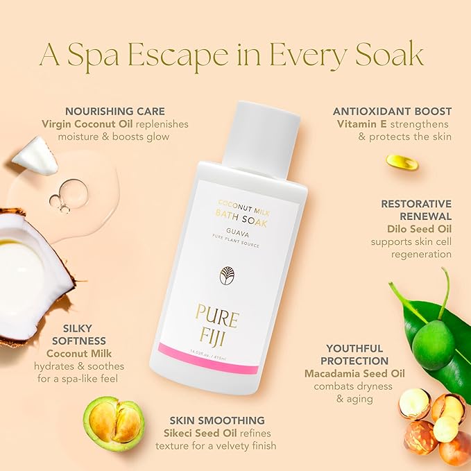 Pure Fiji Coconut Milk Bath Soak, Guava (14oz/415ml)