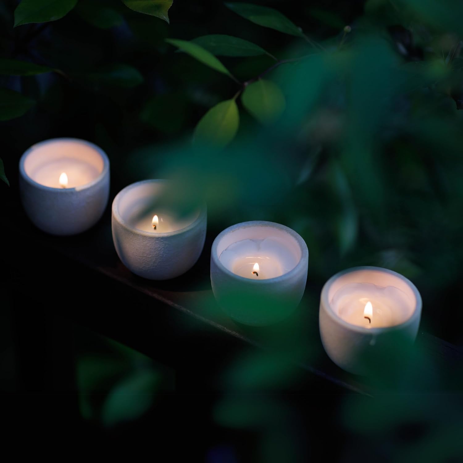 BLUEME 4pk Wellness Travel Candle Votive, Sustainable, Contains Essential Oil, Soy-Wax Blend (Romance, Spiritual, Happiness, Renew)