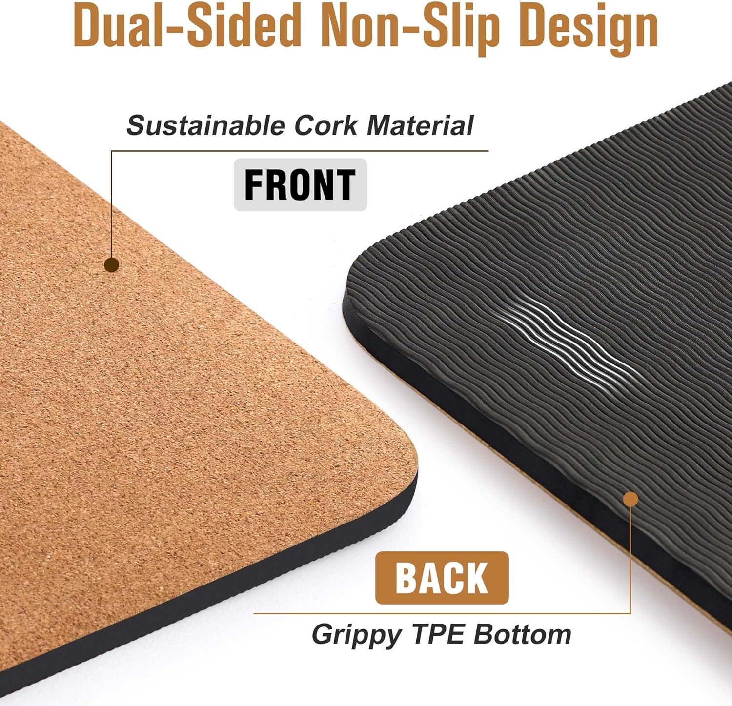 Premium Cork Yoga Mat 1/4 & 2/5 Inch Thick 72 x 26 in, Thick Cork and TPE Non Slip Yoga Mats for Women Men, Sweat Proof Eco-friendly, Great for Hot Yoga & Workouts