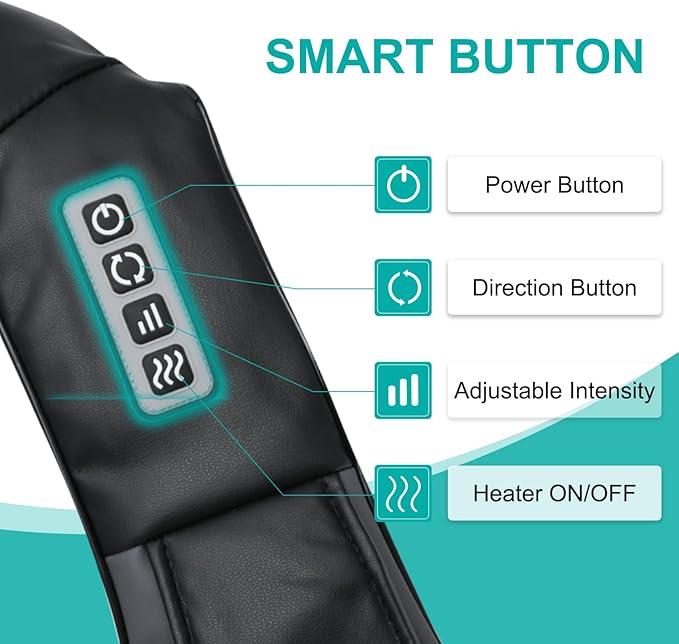 - 【Soothing Heat & Auto-Safety Protection】Our massager improves blood circulation while the 15-minute overheating auto-shut-off protection ensures safe, worry-free use. Heat function can be manually turned off.