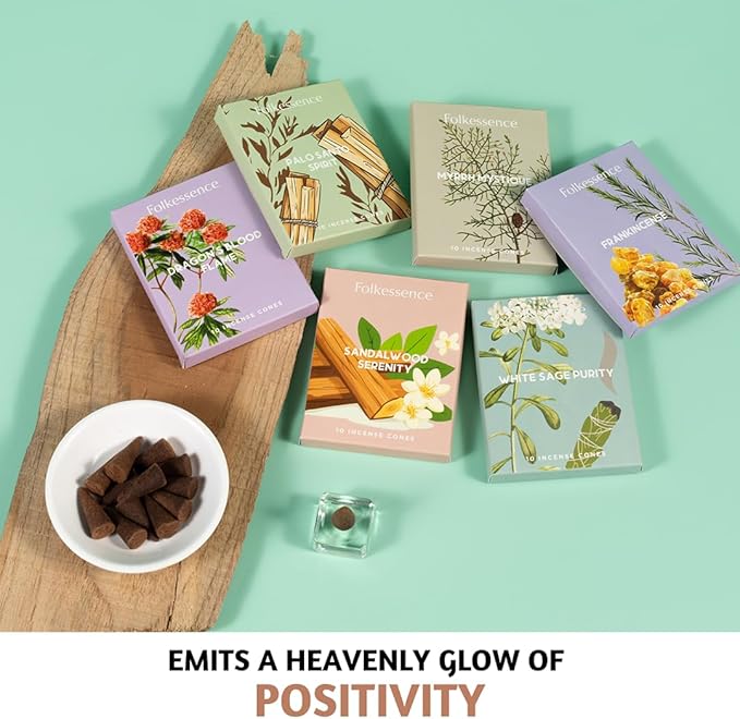 - [Fragrance Note] - These insence feature a beautiful blend of woody and musky fragrances like Palo Santo, Frankincense, White Sage, Sandalwood. The calming effect of cone incense scents can promote emotional balance, uplift your mood, and nourish your spirit.
