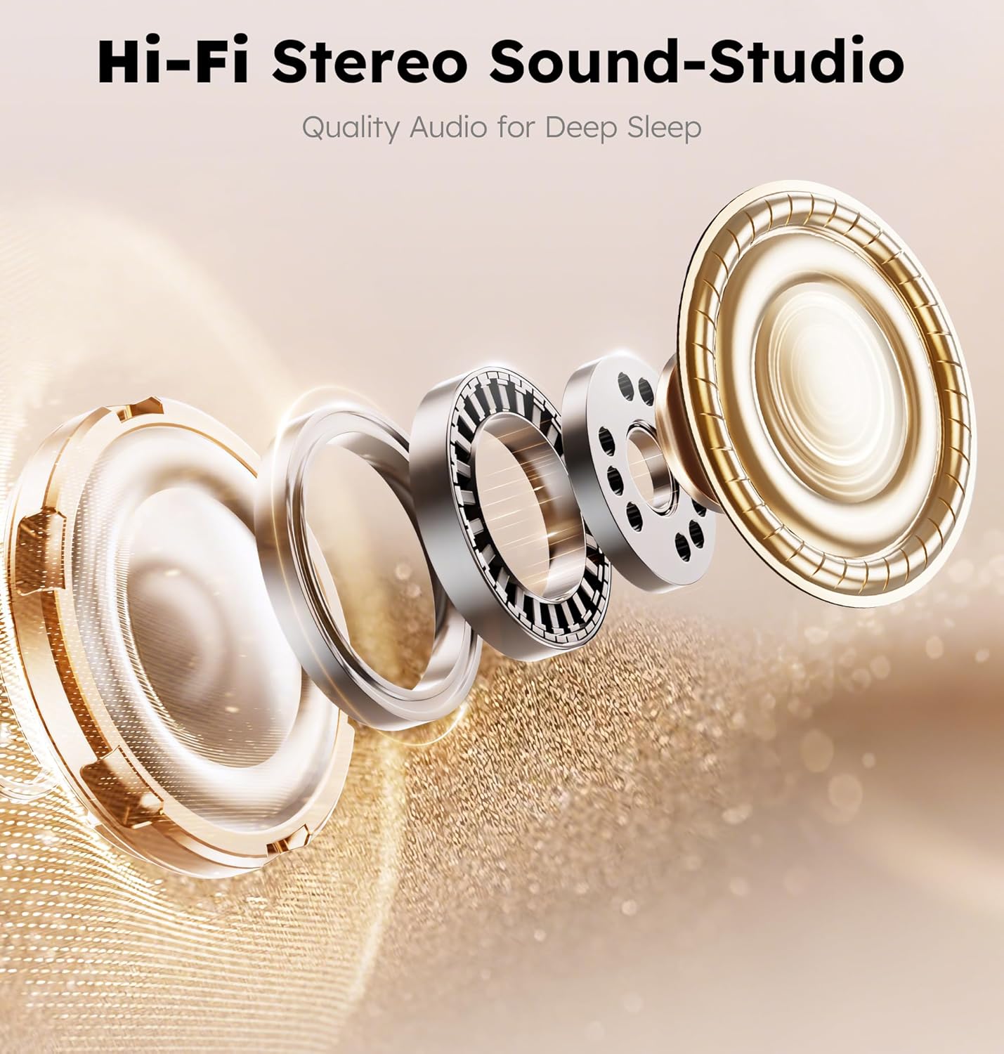 - Bluetooth 5.4 for Faster, Stable Wireless Audio: AHUIARGY sleeping headphones use advanced Bluetooth 5.4 technology to bring you smooth high-quality sound, providing stronger connection, lower latency and wider coverage (49.2ft). The bluetooth sleep headphones deliver crisp audio, so you can drift off faster and stay asleep longer. The built-in sleep headphones are relatively thin, only 0.12in, so there is no pressure when falling asleep, which is very suitable for side sleepers