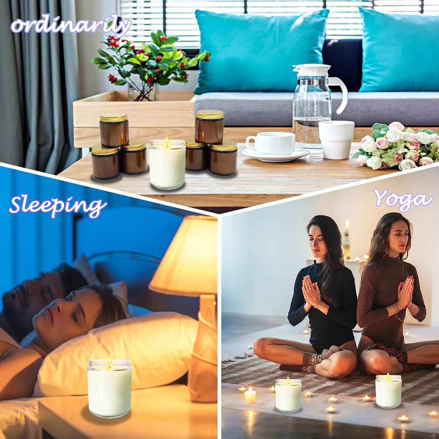 - 🪔🪔SAFE DESIGN: Our aromatherapy candles are made of soy and rose, the bottle is designed by Mason jar shape and white color, the soy candles are smoke-free and harmless and safer, along with the light rose fragrance has a relaxing and soothing effect, which is good for relieving your stress and relaxing your spirit when you are fatigued.